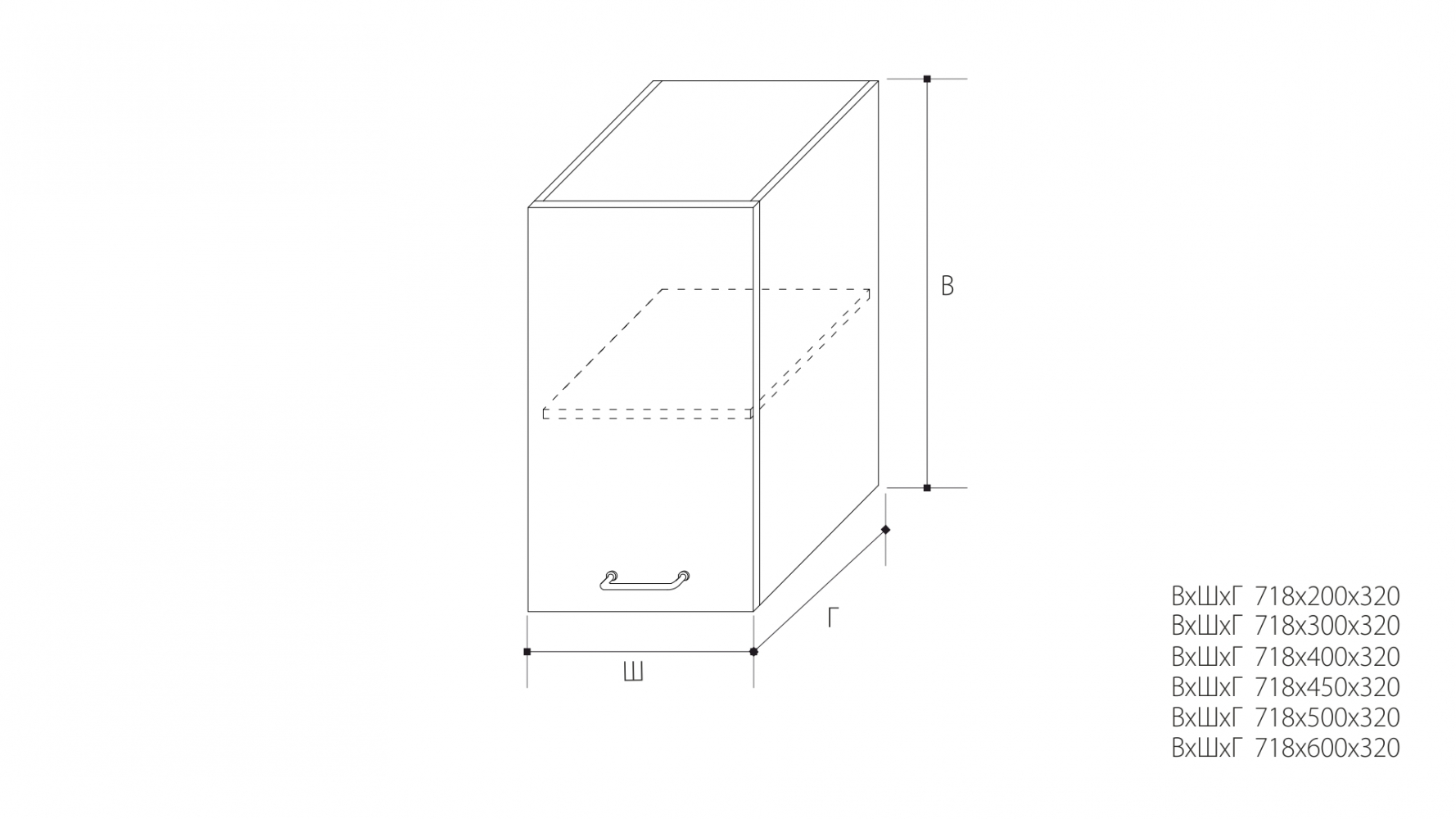 ВхШхГ: 718х450х320 мм.